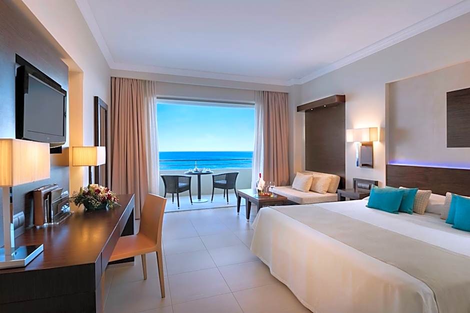 Elite Club Superior Sea View is 388 square feet and includes either a single bed 80-130 width or a queen-size bed 150-154 width plus balcony, hairdryer, tea and coffee making facilities , ironing set, safe, bathrobes, and slippers.
